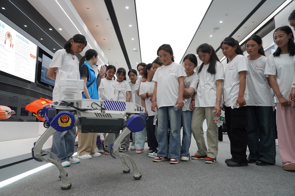 無人汽車、救援機器人、四足機器狗……6月20日上午,來自阿壩州壤塘縣的227名中小學生走進綿陽科技城新區(qū)機器人研學基地,開啟一場沉浸式的未來科技之旅。